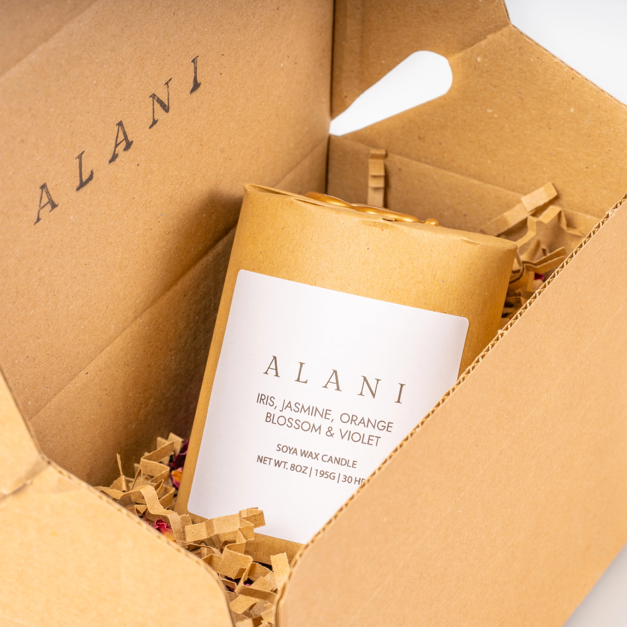 ALANI candles, crafted with expertise, are made from natural soy wax sourced sustainably to ensure clean burning. Soy wax, known for its clean-burning properties, emits less than 90% soot and generally burns 30-50% slower than paraffin-based wax. Moreover, soy wax is free from toxins, carcinogens, and allergens that can cause or exacerbate allergies.