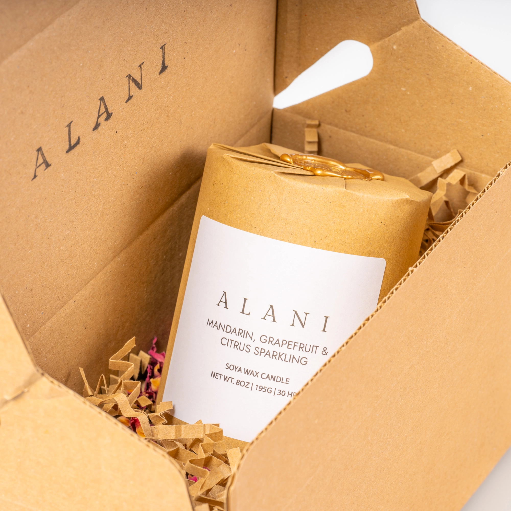 ALANI candles, crafted with expertise, are made from natural soy wax sourced sustainably to ensure clean burning. Soy wax, known for its clean-burning properties, emits less than 90% soot and generally burns 30-50% slower than paraffin-based wax. Moreover, soy wax is free from toxins, carcinogens, and allergens that can cause or exacerbate allergies.